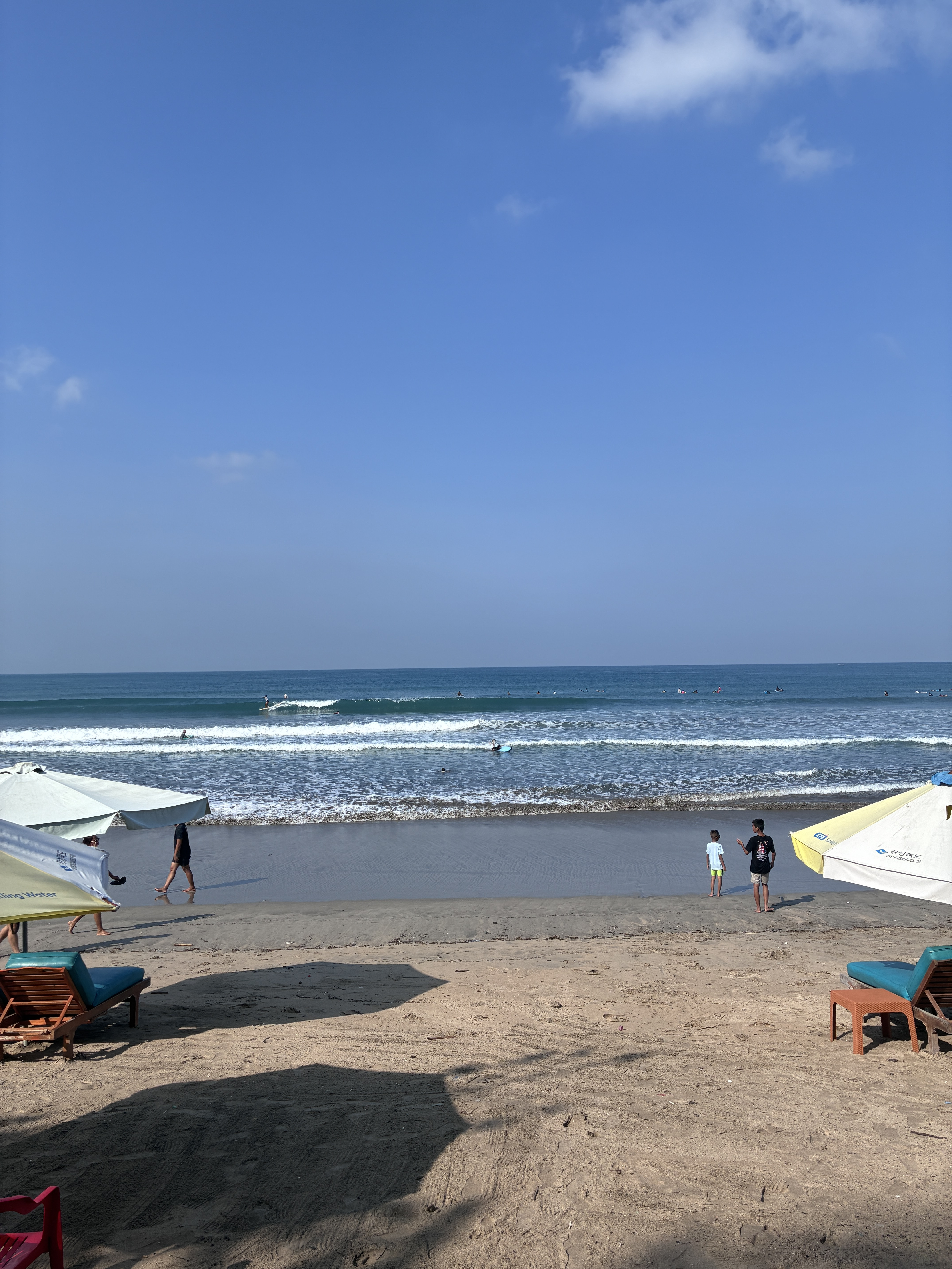 This morning I finally managed to get up on time to go for a run. I met two other runners as well. I ran roughly the same route that we walked on the first day. The sun was shining, there were huge waves on the shore, and quite a few people were surfing.
